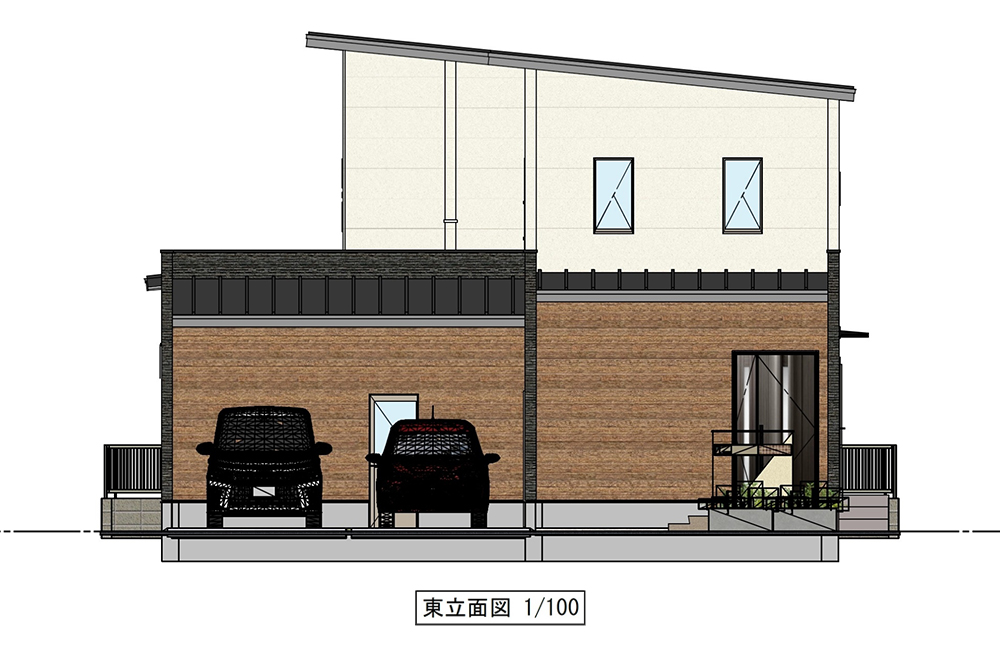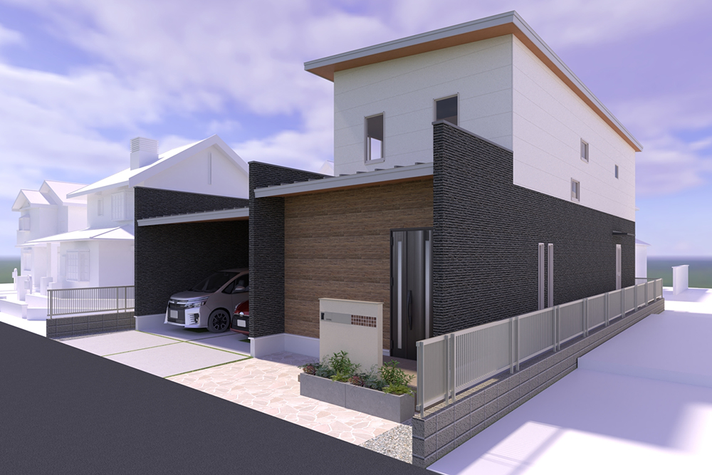 - 中庭は明るい南側へ。近隣住宅の目が気になる南側には、プライベートを守る壁を設置