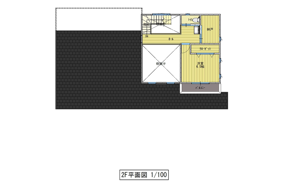 - 玄関とクロークの上部は吹抜けで計画。上部の大きな窓から光を取り込み、明るさを確保